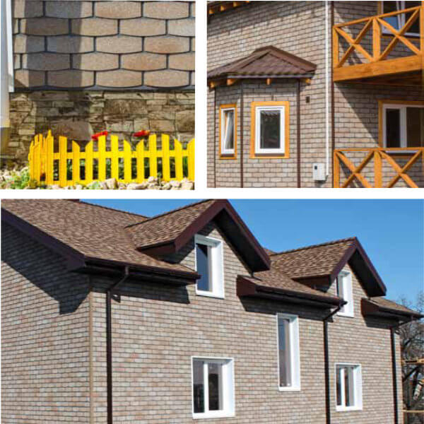Плитка гибкая битумная для фасада Технониколь Хауберг коллекция Камень цвет Травертин размеры 1000х250х3мм (в упаковке 20 штук общей площадью 2,2 м2).