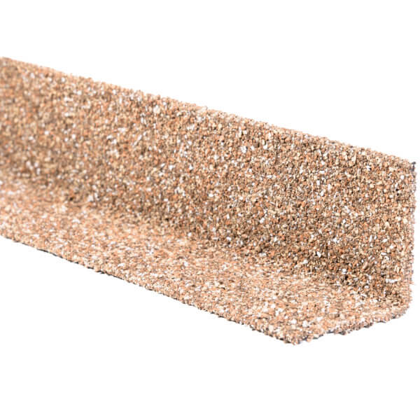 Внутренний уголок изготовлен из высокопрочного стального листа толщиной 0,45 мм. С обоих сторон изделие покрыто алюмоцинковым сплавом. Покрытие внешней стороны – базальтовый гранулят. Уголок не подвержен коррозии и не будет окисляться даже в месте среза при монтаже, а также в случае появления царапин на слое.