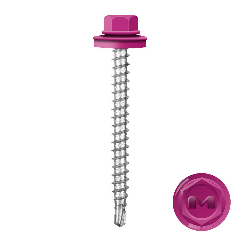 Кровельные саморезы Daxmer (Даксмер) по дереву цветом RAL4006 Пурпурный 4,8*50мм окрашиваются УФ-стойкой полиэфирной порошковой краской. Цинковое антикоррозийное покрытие обеспечивает длительный срок службы саморезов (не менее 25 лет). Специальная металлическая шайба с ЕРDМ - уплотнителем обеспечивает плотное прилегание профилированного металла (кровли) к деревянной обрешетке, а также препятствует попаданию влаги.
