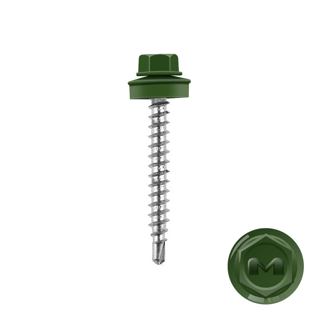 Кровельные саморезы Daxmer (Даксмер) по дереву цветом RAL6002 Зеленый лист 4,8*35мм окрашиваются УФ-стойкой полиэфирной порошковой краской. Цинковое антикоррозийное покрытие обеспечивает длительный срок службы саморезов (не менее 25 лет). Специальная металлическая шайба с ЕРDМ - уплотнителем обеспечивает плотное прилегание профилированного металла (кровли) к деревянной обрешетке, а также препятствует попаданию влаги.