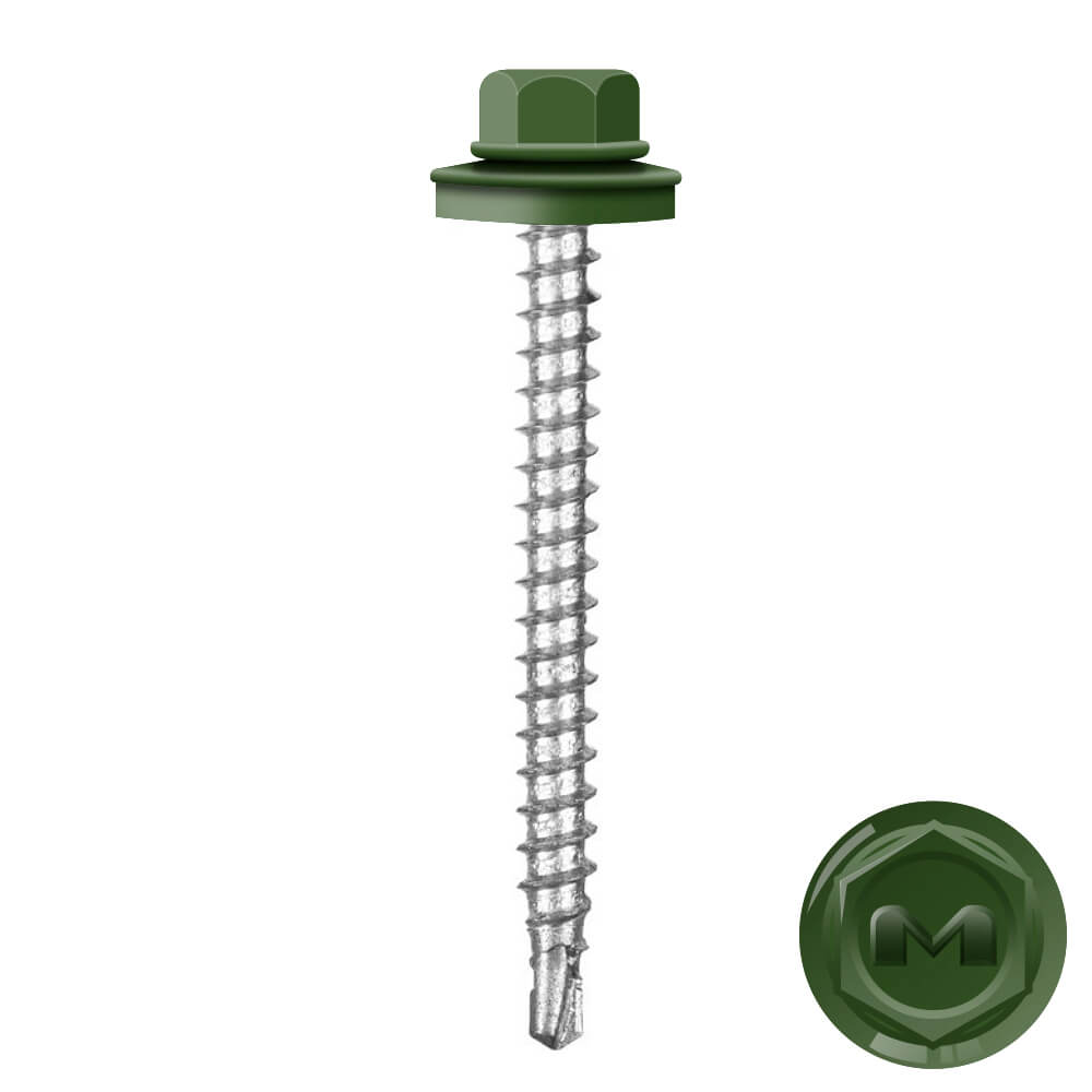 Кровельные саморезы Daxmer (Даксмер) по дереву цветом RAL6002 Зеленый лист 4,8*50мм окрашиваются УФ-стойкой полиэфирной порошковой краской. Цинковое антикоррозийное покрытие обеспечивает длительный срок службы саморезов (не менее 25 лет). Специальная металлическая шайба с ЕРDМ - уплотнителем обеспечивает плотное прилегание профилированного металла (кровли) к деревянной обрешетке, а также препятствует попаданию влаги.