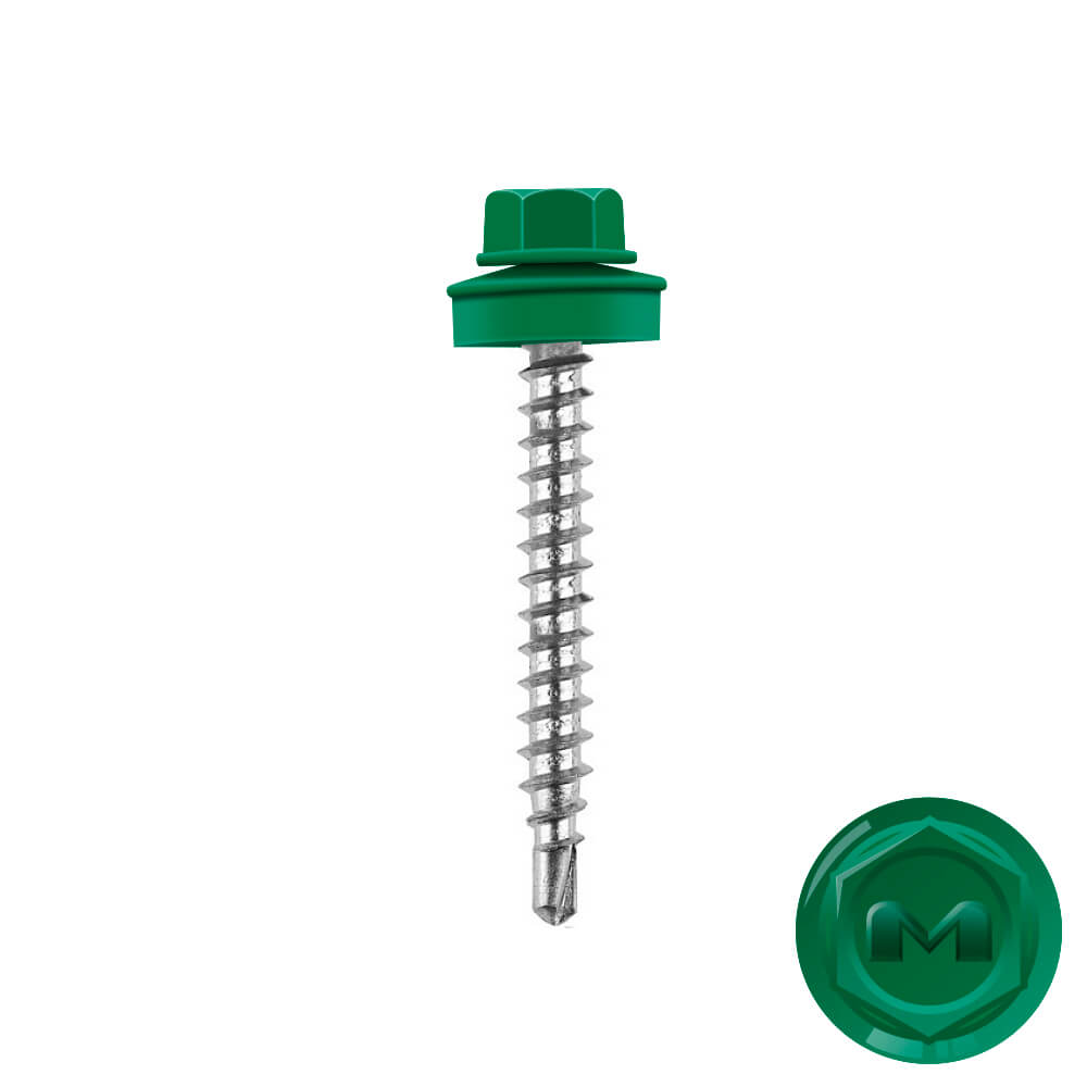 Кровельные саморезы Daxmer (Даксмер) по дереву цветом RAL6029 Зеленая мята 4,8*35мм окрашиваются УФ-стойкой полиэфирной порошковой краской. Цинковое антикоррозийное покрытие обеспечивает длительный срок службы саморезов (не менее 25 лет). Специальная металлическая шайба с ЕРDМ - уплотнителем обеспечивает плотное прилегание профилированного металла (кровли) к деревянной обрешетке, а также препятствует попаданию влаги.