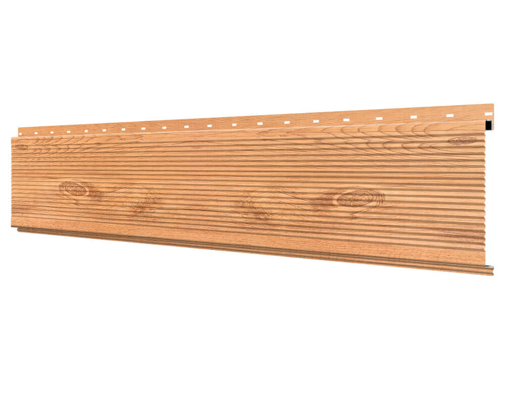Линеарная потолочно-стеновая панель РИФЛЕНАЯ усиленная цвет под дерево Клен Светлый 3Д SteelArt Россия применяется в качестве софитов для подшивы крыши, наружной и внутренней отделки потолков, стен, фронтонов фасада дома в Астрахани.