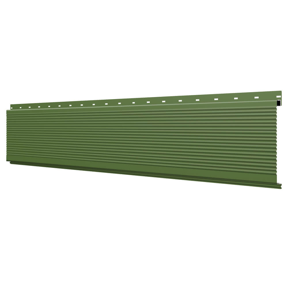 Линеарная потолочно-стеновая панель РИФЛЕНАЯ усиленная цвет RAL6002 Зеленый Лист применяется в качестве софитов для подшивы крыши, наружной и внутренней отделки потолков, стен, фронтонов фасада дома в Астрахани.