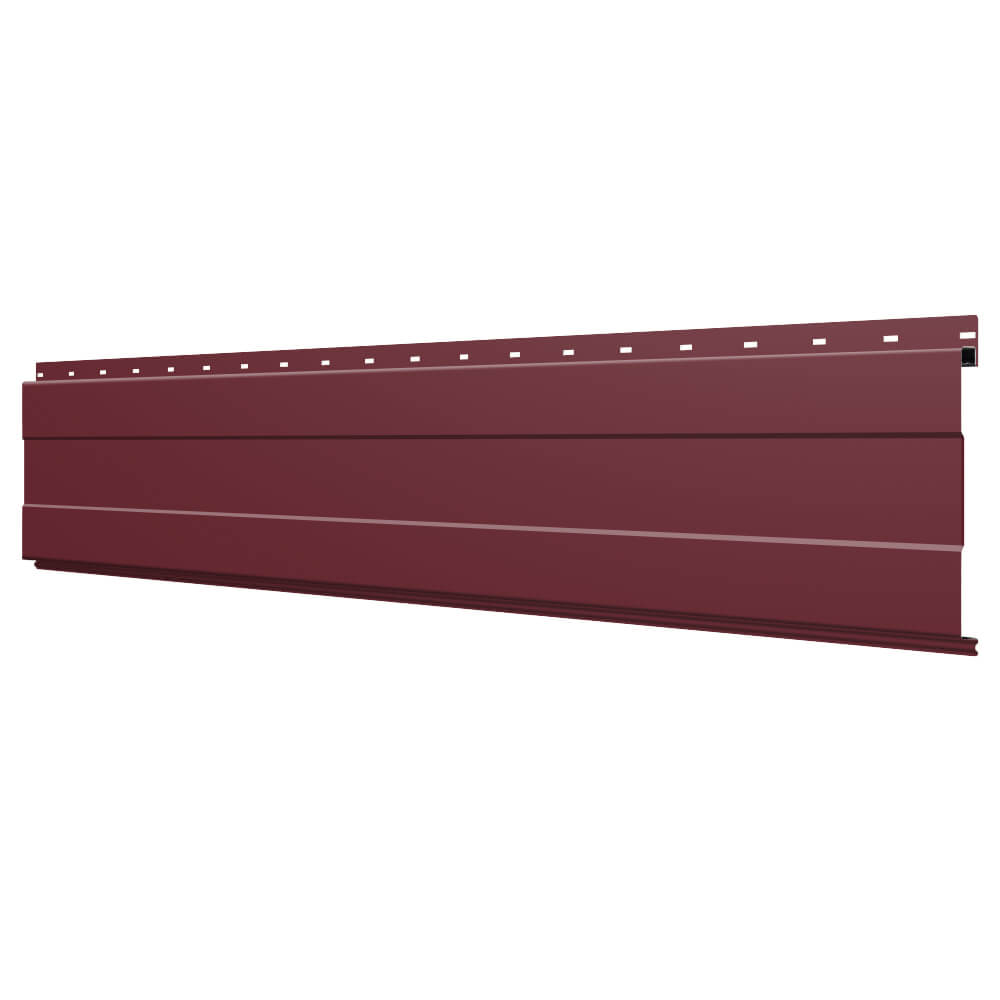 Линеарная потолочно-стеновая панель с ПОЛОСОЙ усиленная цвет RAL3005 Красное Вино применяется в качестве софитов для подшивы крыши, наружной и внутренней отделки потолков, стен, фронтонов фасада дома в Астрахани.