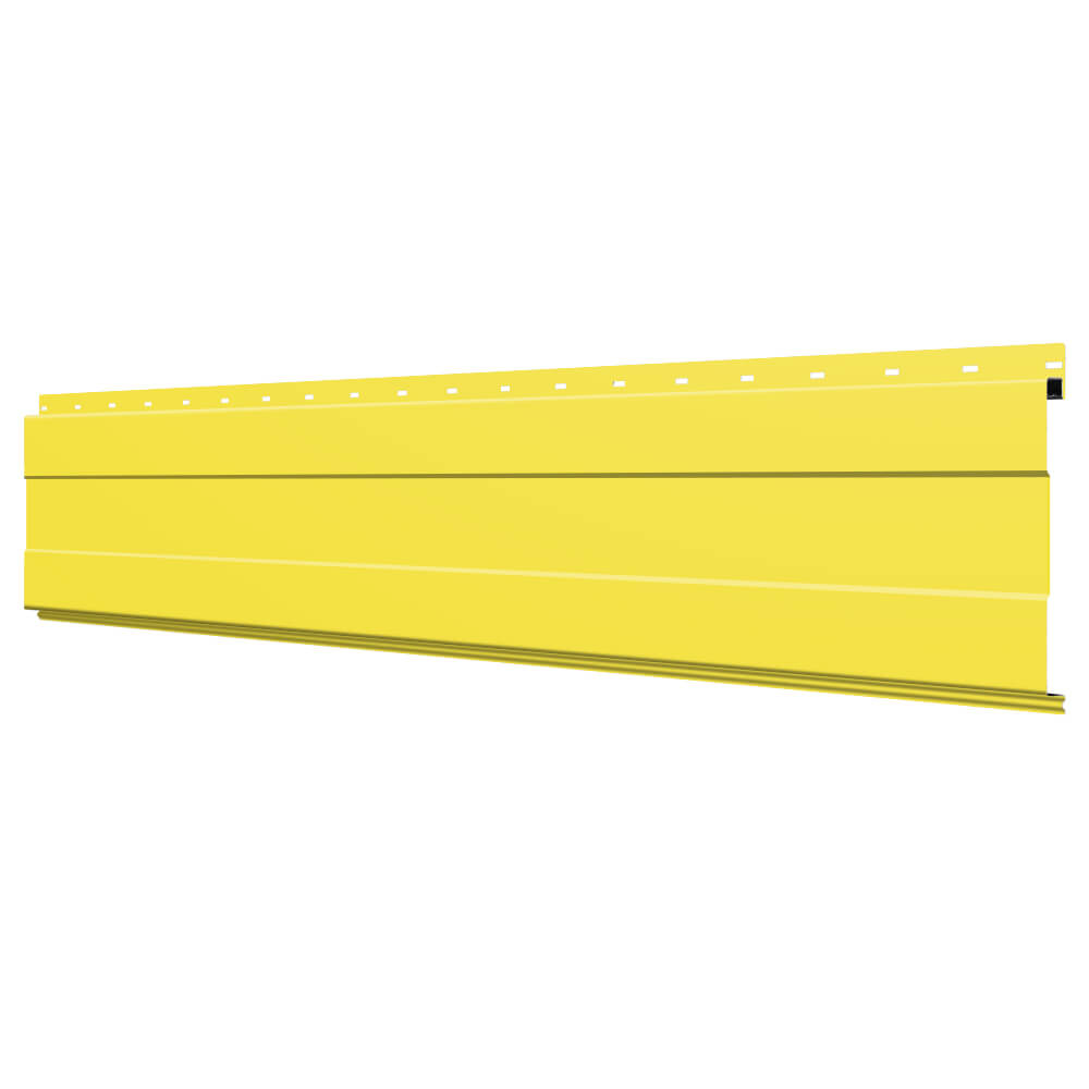 Линеарная потолочно-стеновая панель с ПОЛОСОЙ усиленная цвет RAL1018 Желтый применяется в качестве софитов для подшивы крыши, наружной и внутренней отделки потолков, стен, фронтонов фасада дома в Астрахани.
