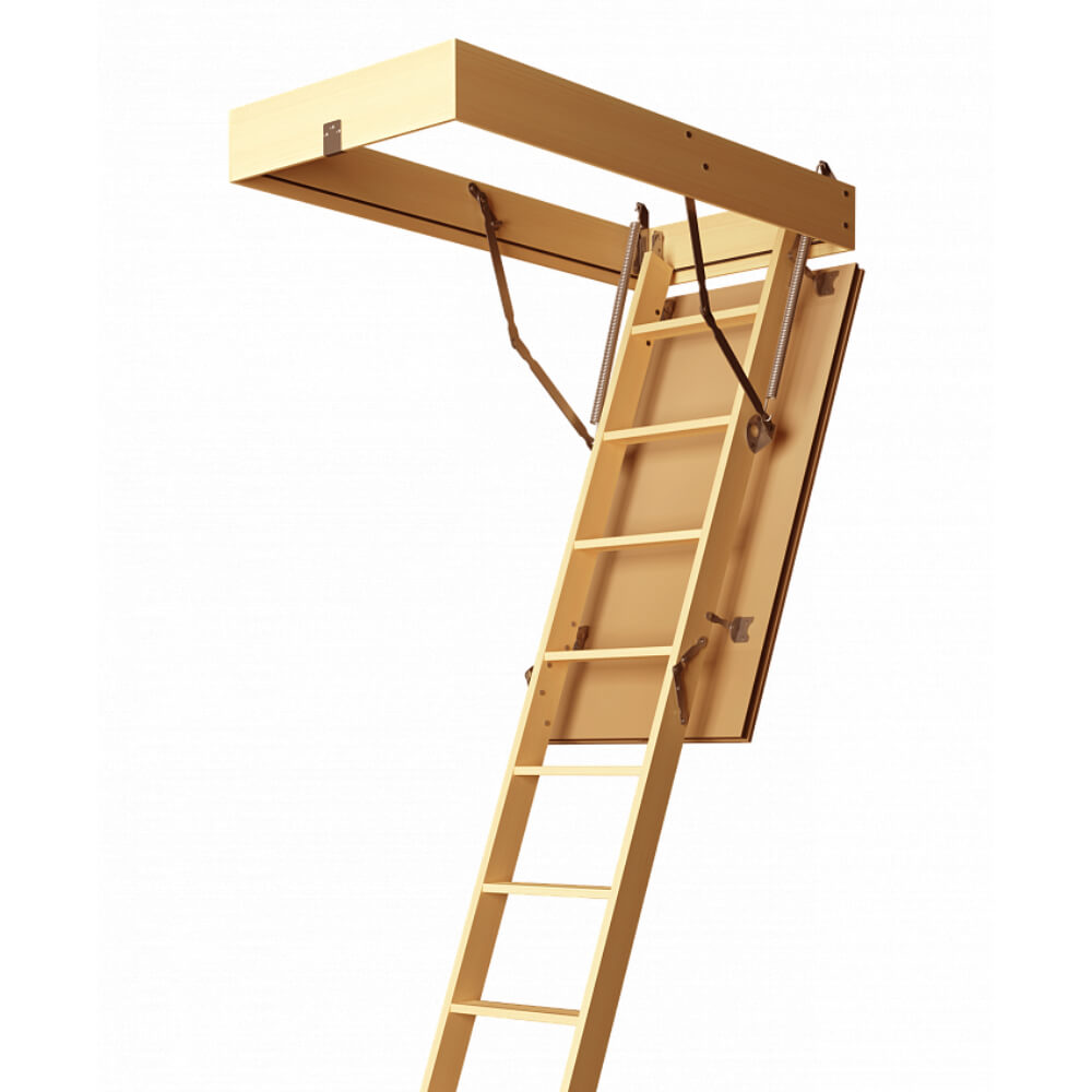 Чердачные лестницы Döcke STANDARD изготовлены из отборной сибирской сосны с применением металлической фурнитуры и полимерных материалов. Лестница рассчитана на максимальную нагрузку 120 кг. Основная нагрузка приходится на ступени, поэтому их толщина 20 мм. Рельефная поверхность ступеней предотвращает скольжение. Крышка люка утеплена пенополистиролом. Короб с уплотнительным контуром не допустят образования «мостиков холода» между неотапливаемым чердаком и жилыми помещениями. Замок и специальный ключ обеспечивают надёжное запирание люка.