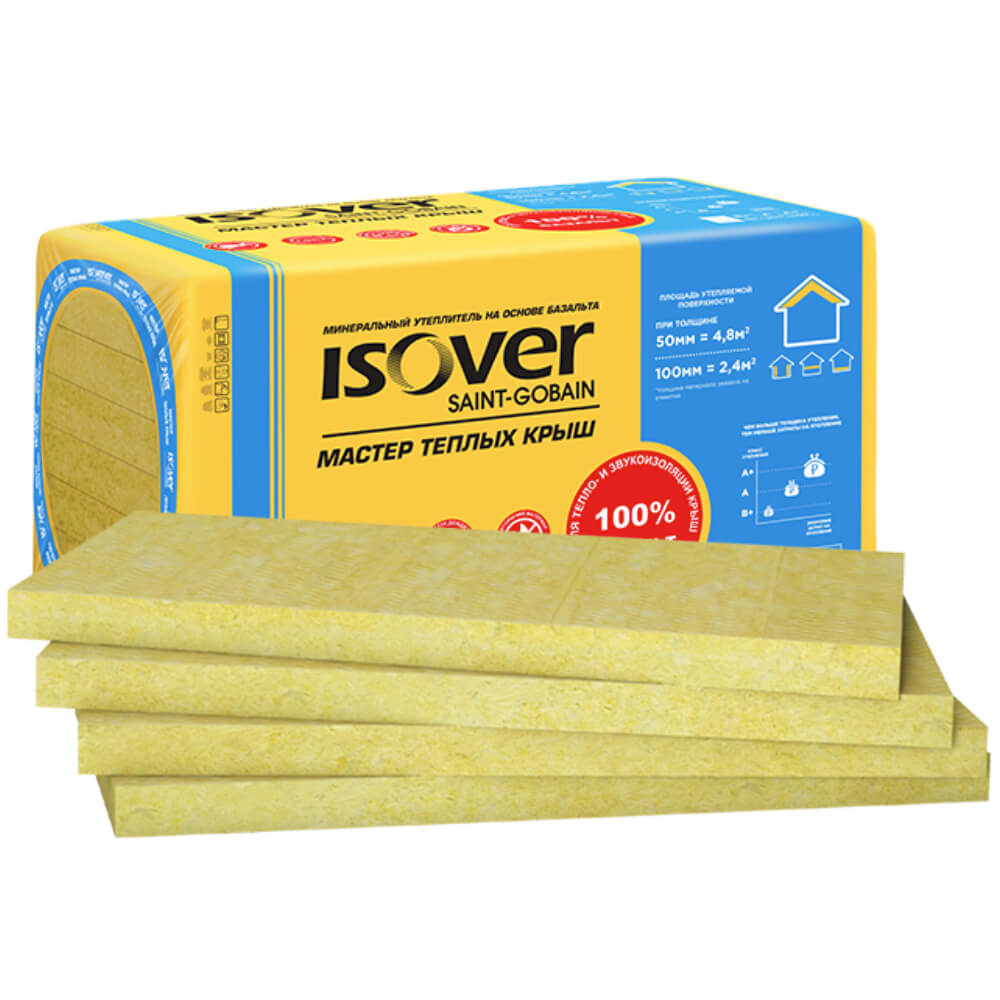 Утеплитель ISOVER Мастер Теплых Крыш — тепло- и звукоизоляция в форме плит из минеральной ваты на основе каменного волокна, производимых из природных компонентов вулканических пород базальтовой группы. Характеристики продукта обеспечивают дополнительную защиту от шума и надежность при утеплении крыш и мансард.