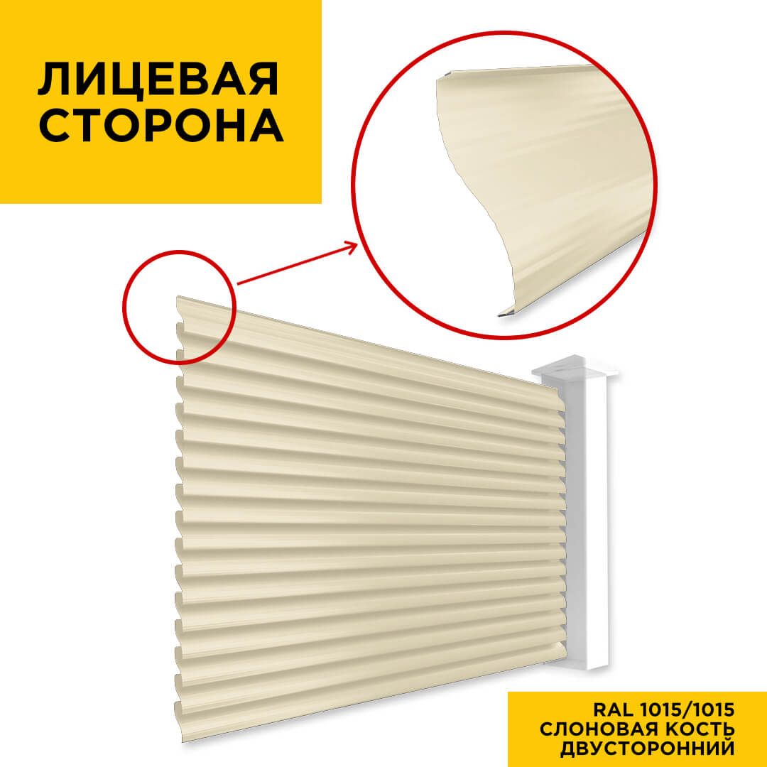 Ламель забора Еврожалюзи металлическая S-образная, цвет RAL 1015/1015 Слоновая Кость двустороннее покрытие полиэстер, длина любая кратно 1см под заказ - для забора-жалюзи, беседки, перголы в Астрахани