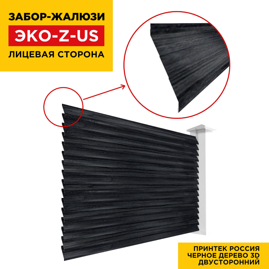Ламель ЭКО-Z-US усиленная Черное Дерево 3D Принтек для забора-жалюзи 2-х сторонняя