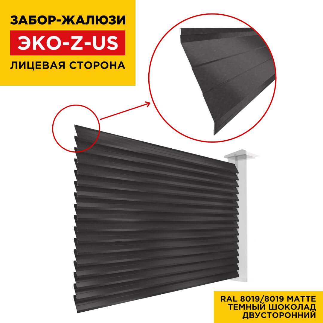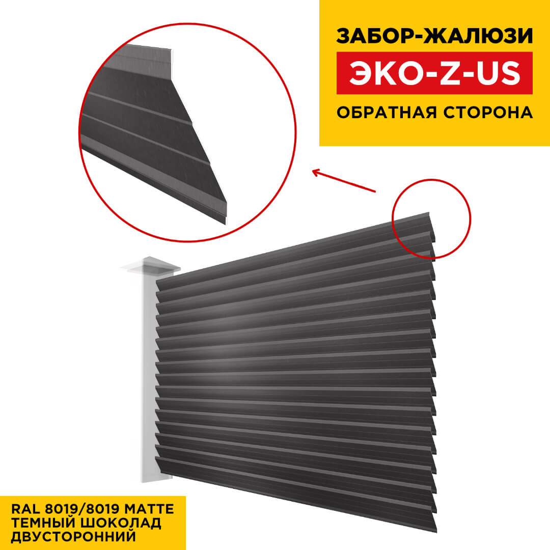 Ламель ЭКО-Z-US усиленная RAL8019/8019 МАТТЕ Темный Шоколад для забора-жалюзи 2-х сторонняя