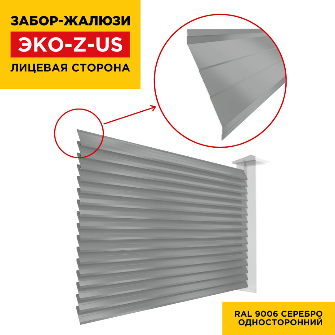 Ламель ЭКО-Z-US усиленная RAL9006 Серебро для забора-жалюзи