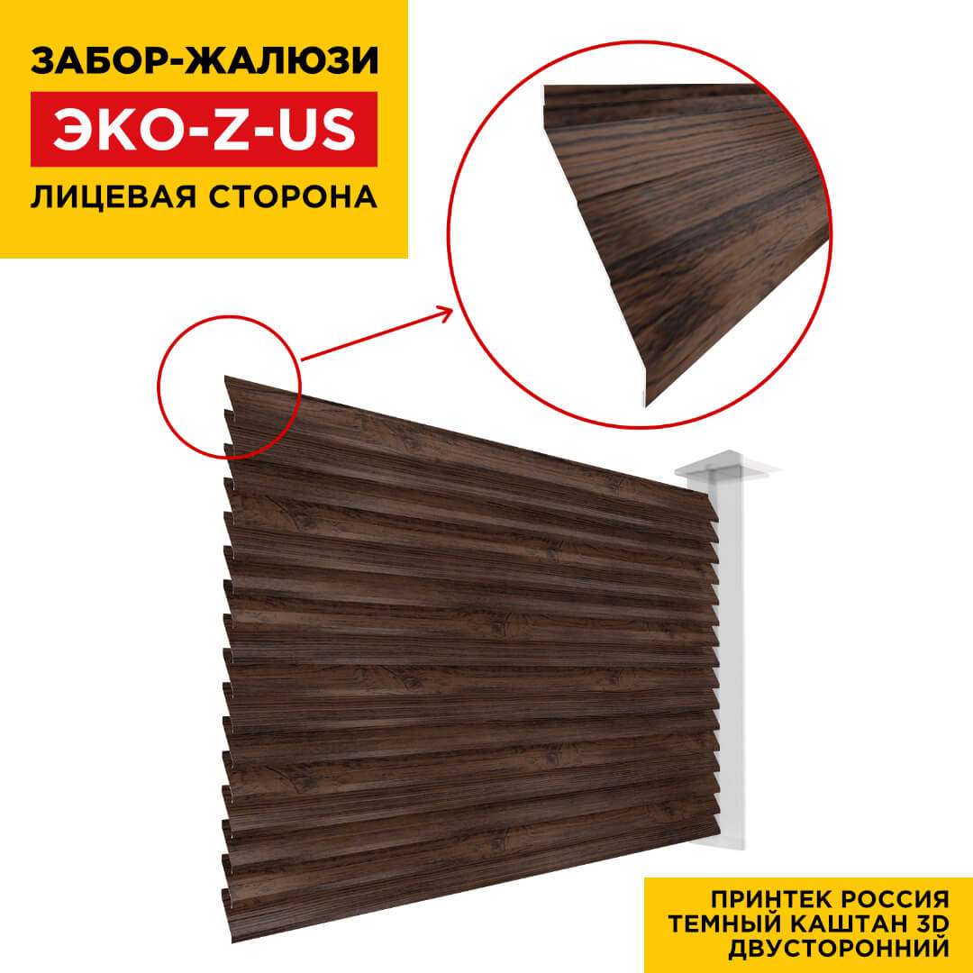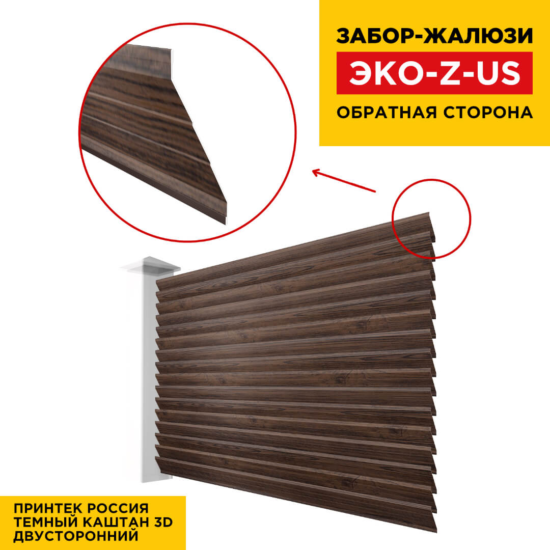 Ламель металлическая Z-образная усиленная ЭКО-Z-US, цвет под дерево Темный Каштан 3D Принтек Россия двухстороннее покрытие, длина любая кратно 1см под заказ - для забора-жалюзи, беседки, перголы в Астрахани