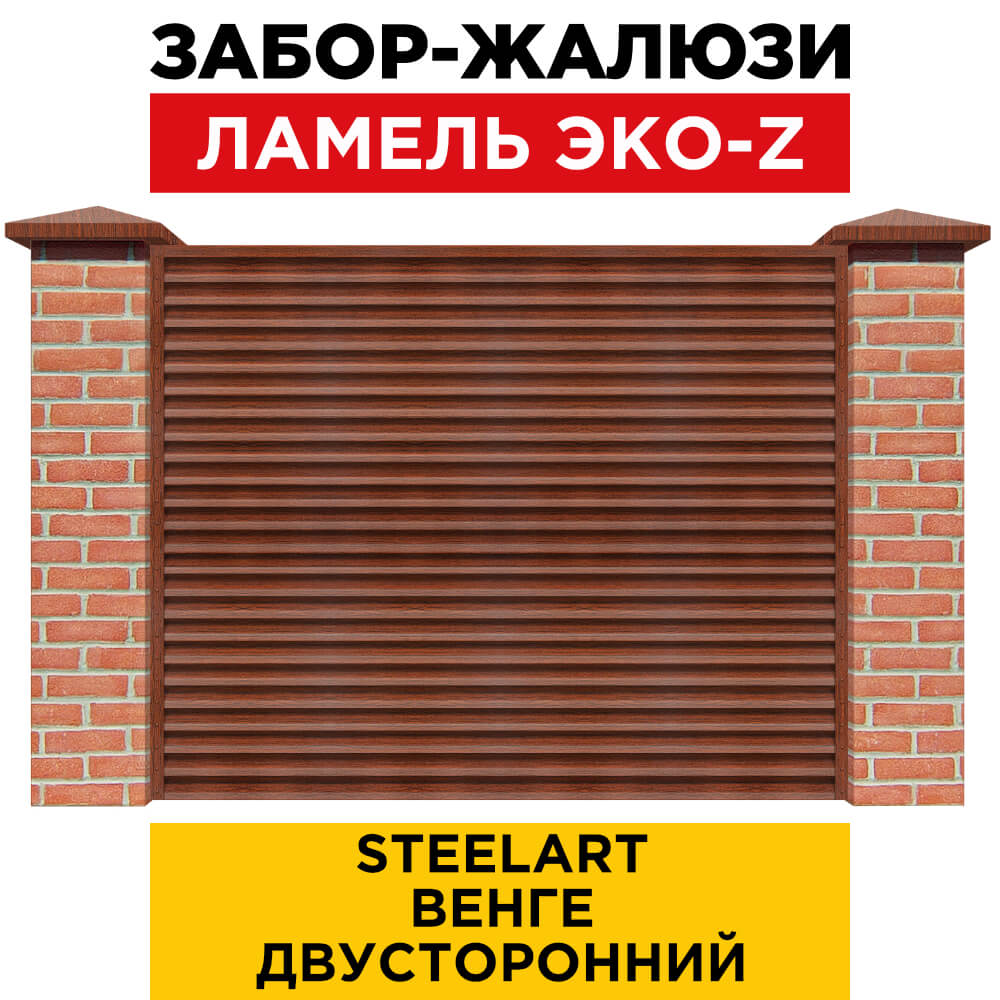 Ламель металлическая Z-образная простая ЭКО-Z, цвет под дерево Венге SteelArt двухстороннее покрытие, длина любая кратно 1см под заказ - для забора-жалюзи, беседки, перголы в Астрахани