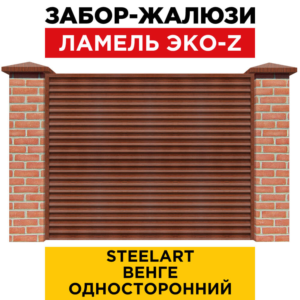 Ламель металлическая Z-образная простая ЭКО-Z, цвет под дерево Венге SteelArt одностороннее покрытие, длина любая кратно 1см под заказ - для забора-жалюзи, беседки, перголы в Астрахани