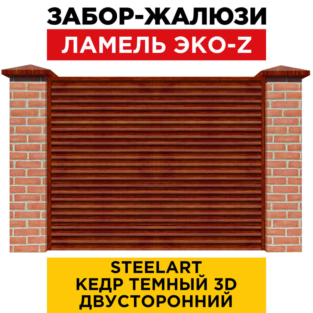 Ламель ЭКО-Z Кедр Темный 3D SteelArt забора жалюзи двухсторонняя