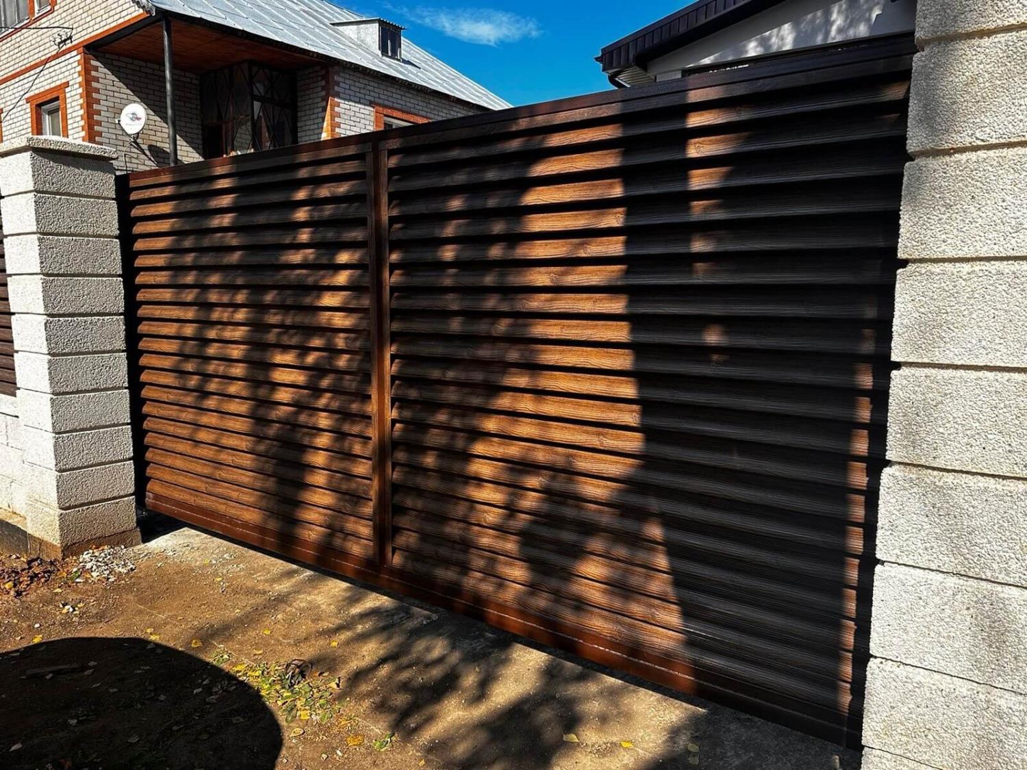 • Фото ДО и ПОСЛЕ гаражные ворота из металлосайдинга Евро-Брус и забор из штакетника